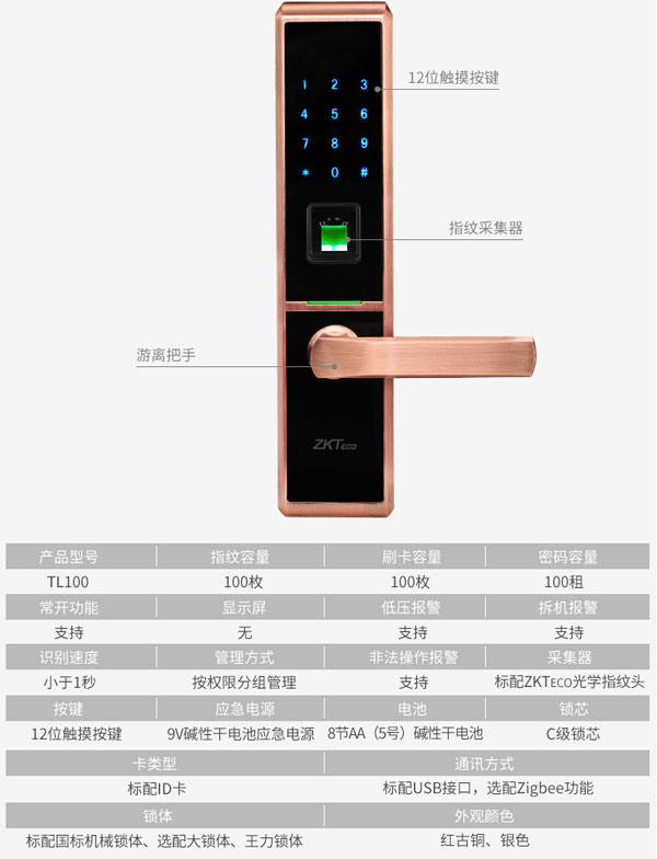 名稱:TL100智能電子密碼指紋鎖