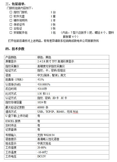 指紋門禁機(jī)系列是采用國(guó)際最先進(jìn)的指紋識(shí)別算法,具有強(qiáng)大的指紋智能學(xué)習(xí)功能,在環(huán)境、氣候的變化及手指受傷、脫皮的情況下,指紋識(shí)別能力顯著提高,實(shí)現(xiàn)滿指紋狀態(tài)下指紋識(shí)別少于1秒,標(biāo)準(zhǔn)的USB通訊、RS485通訊、TCP/IP通訊、無(wú)線Wifit通訊、U盤上傳下載人員姓名功能,內(nèi)置ID(可選配IC)射頻卡讀卡器,實(shí)現(xiàn)射頻卡、指紋、密碼任意組合開門方式或選擇指紋+指紋開門方式安全加強(qiáng),外觀精巧、簡(jiǎn)單易用、操作直觀、功能強(qiáng)大、觸摸按鍵顯得格外高貴。指紋識(shí)別技術(shù)。