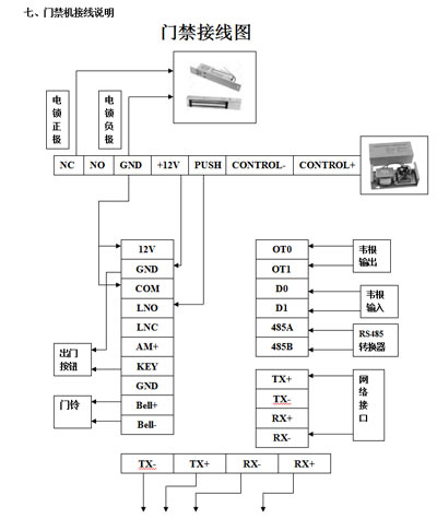 本設(shè)備推薦使用12V的直流電源,建議使用3A/12VDC的電鎖,如鎖的電源參數(shù)超過(guò)此范圍,請(qǐng)咨詢相關(guān)技術(shù)人員。電源的電流應(yīng)該大于電鎖電流1A,如電源沒有到達(dá)到以上要求,可能導(dǎo)致無(wú)法正常驅(qū)動(dòng)電鎖甚至損壞機(jī)器