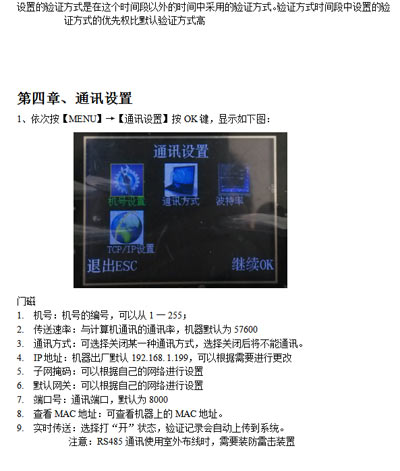 3)如TCP/IP不通訊,檢查門禁機(jī)里的IP是否設(shè)置,網(wǎng)段是否于電腦一致